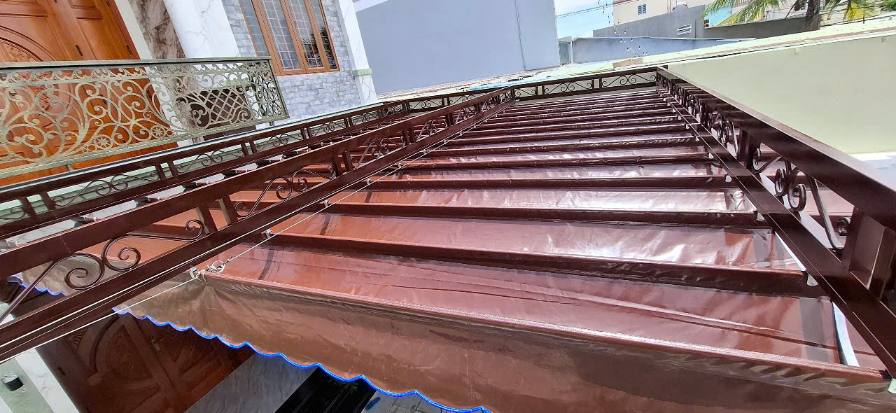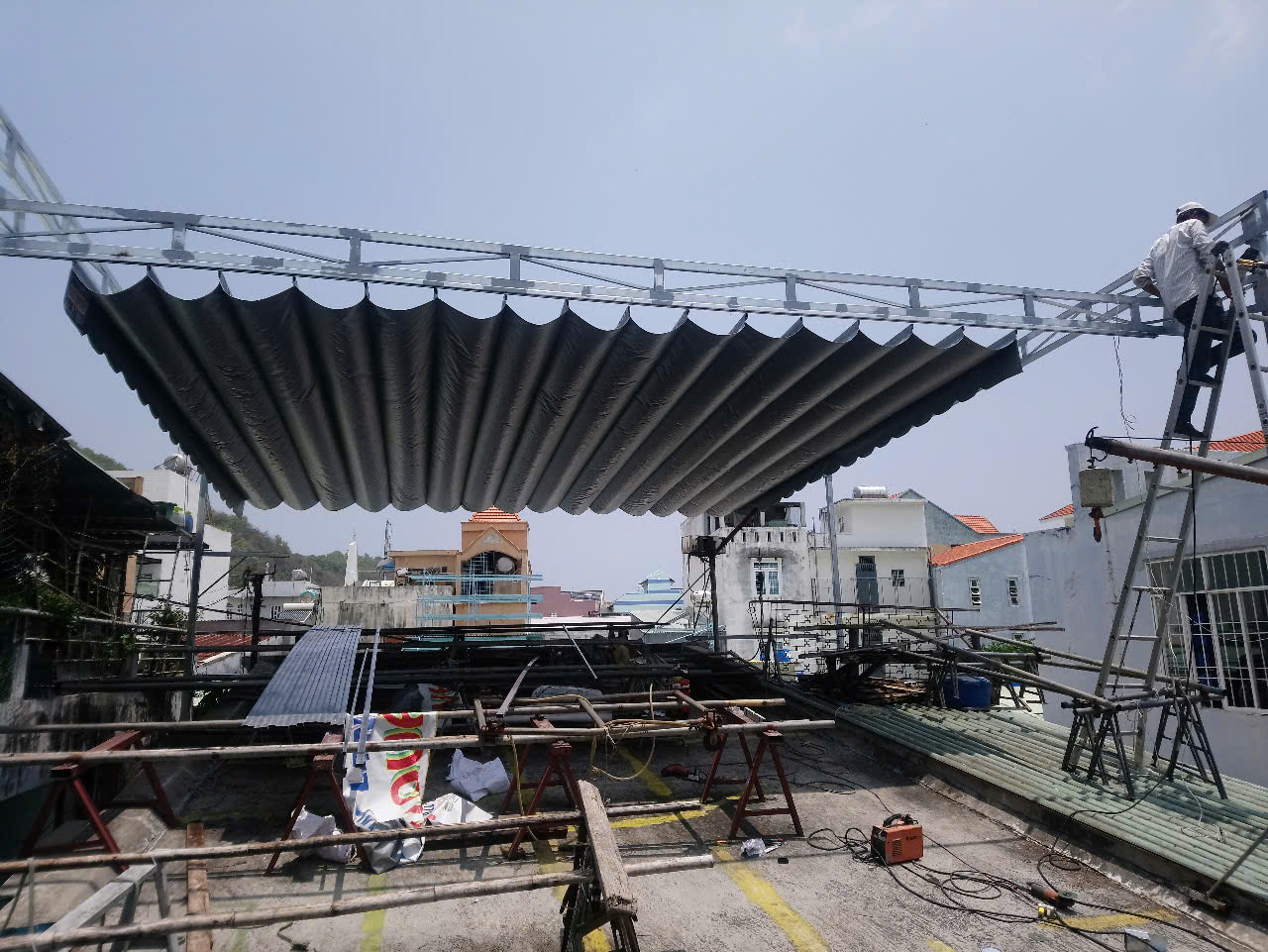 Căng bạt mái, lắp đặt hệ thống ray trượt, motor (nếu là mái tự động).